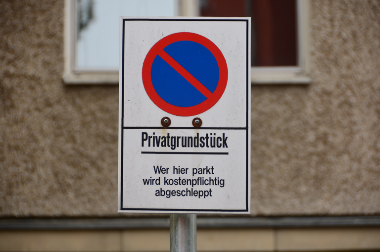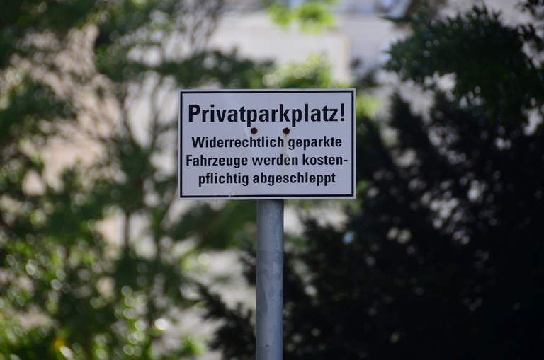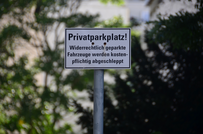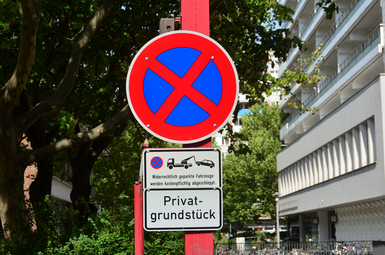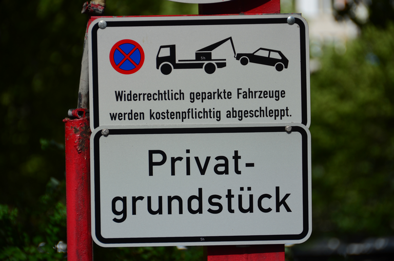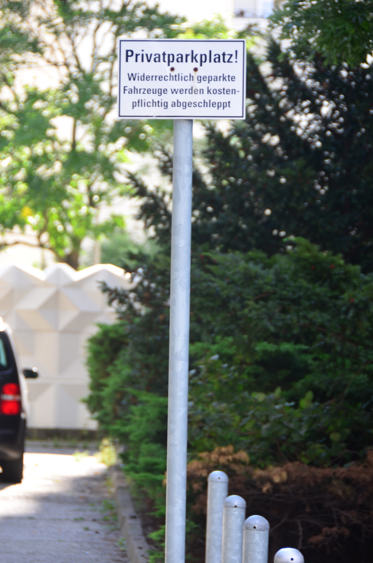 Zusatzzeichen Privatgrundstück und kostenpflichtiges Abschleppen