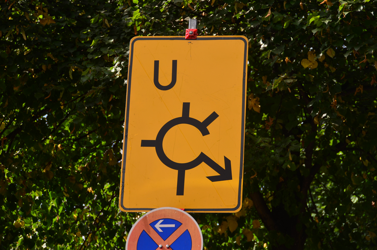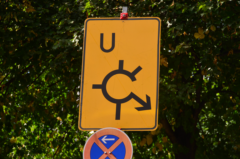 Verkehrsschild vorgeschriebene Vorbeifahrt - rechts vorbei
