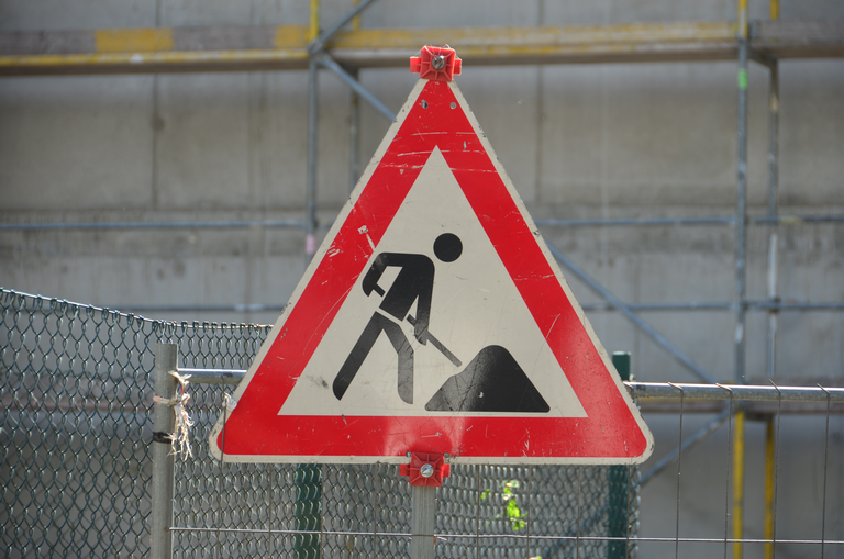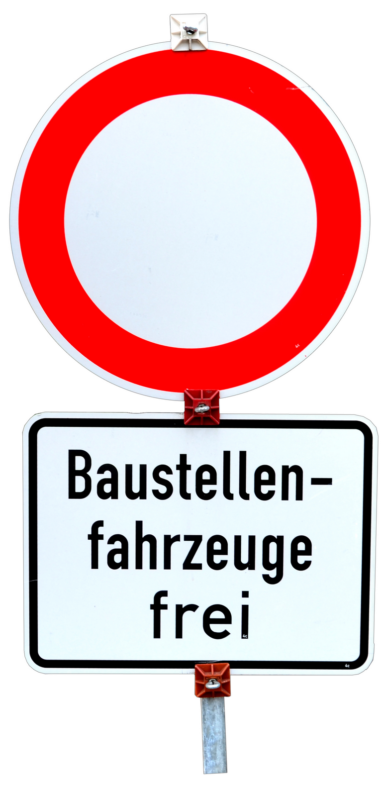 Verkehrsschild Verbot für Fahrzeuge aller Art außer Baustellenfahrzeuge
