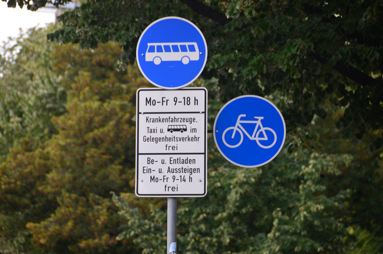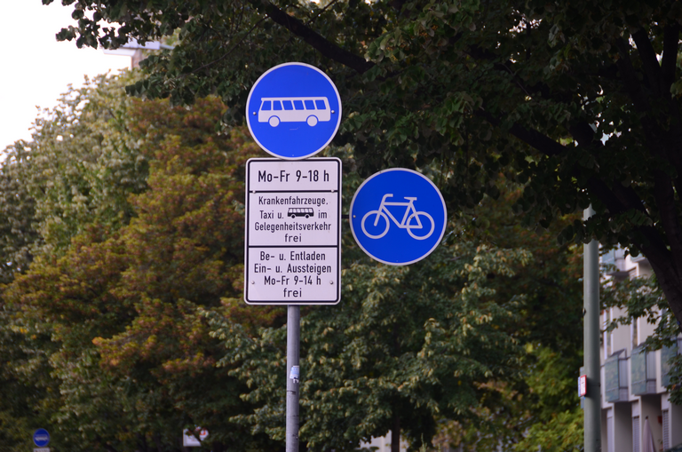 Verkehrszeichen Sonderweg Radfahrer und Linienbusse